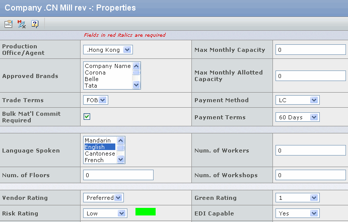 Vendor Rating - Select the vendor rating from the drop-down list, such