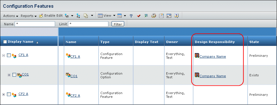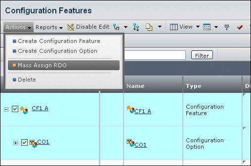 The new RDO for the selected objects appears in the Design Responsibility column of the Configuration Features page.