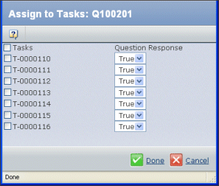 For each task that you checked, choose the Question Response that should cause the task to be added (note that once you specify the Question Response, you cannot change it):